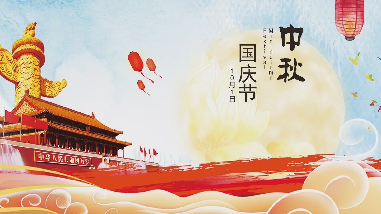 中秋國慶雙喜臨門PPT模板所有素材批量下載
