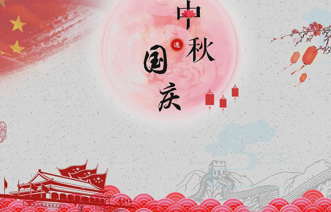 中秋國慶雙喜臨門PPT模板所有素材批量下載