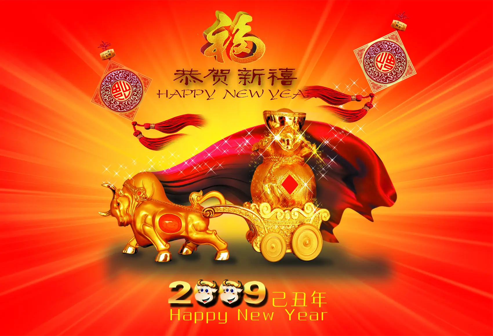 牛拉寶車的新年PPT模板