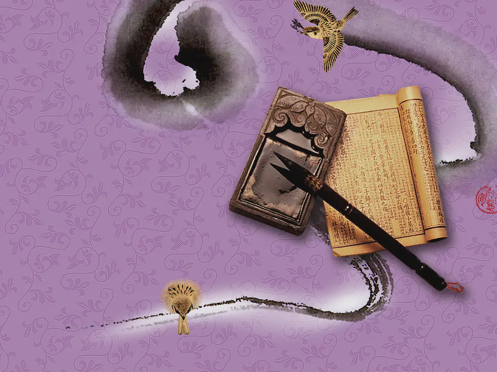 紫色筆墨紙硯中國風PPT模板