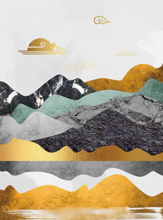 豪華金箔質感山水背景年終工作總結計劃PPT模板