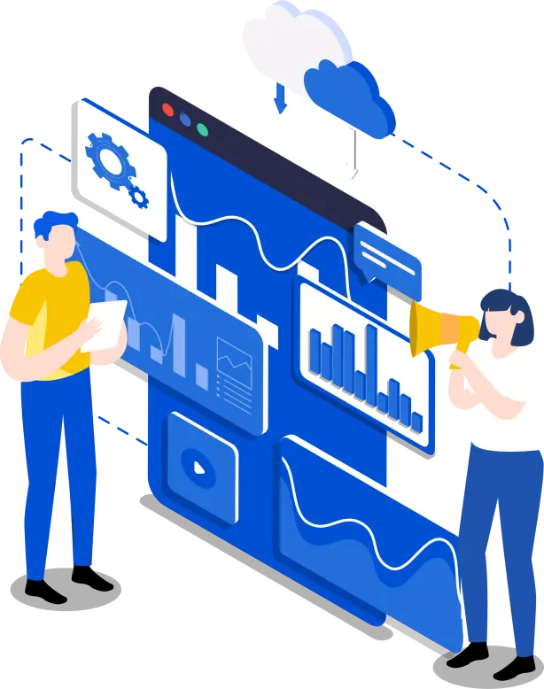 藍色矢量2.5D風格數據分析工作報告PPT模板