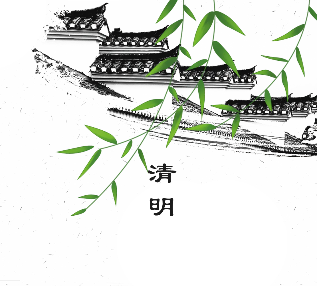 綠色水墨植物仙鶴背景的清明PPT模板