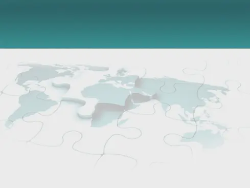 世界地圖拼圖PPT模板,帶青色背景