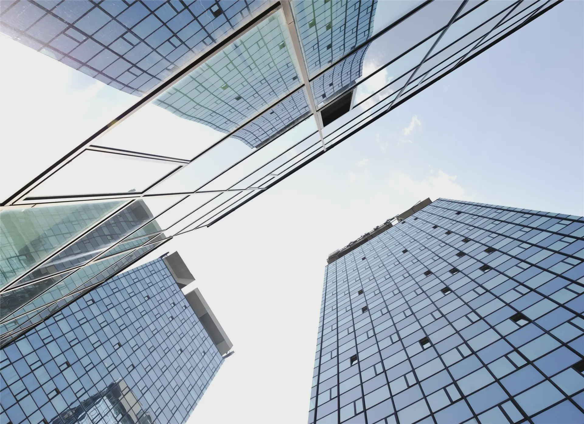 商業建築背景上的藍色和橙色配色的公司介紹PPT模板
