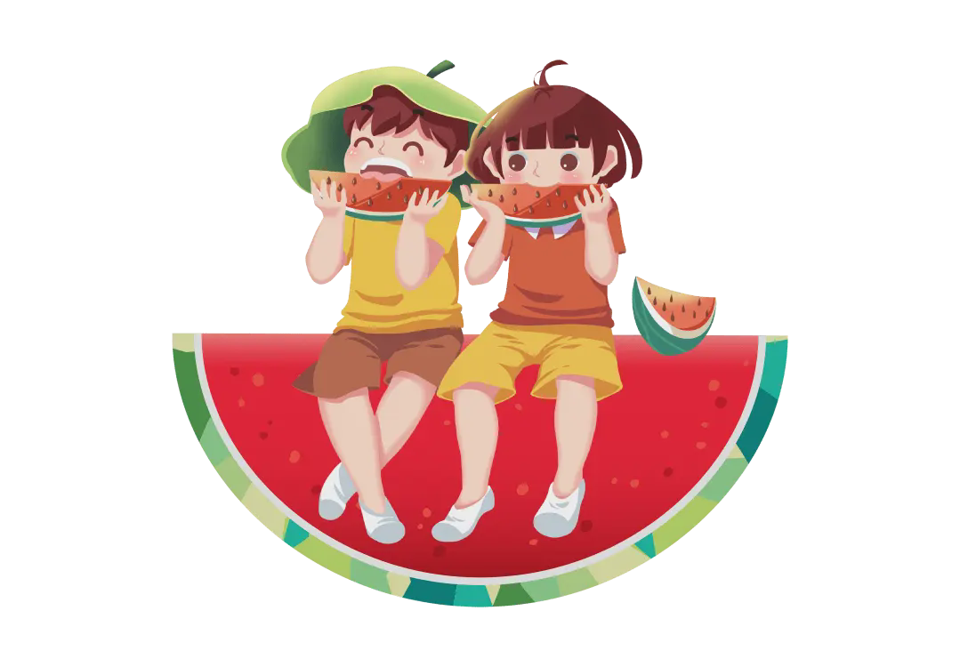 介紹夏天的節日的PPT模板,兒童在樹林裡吃西瓜的背景