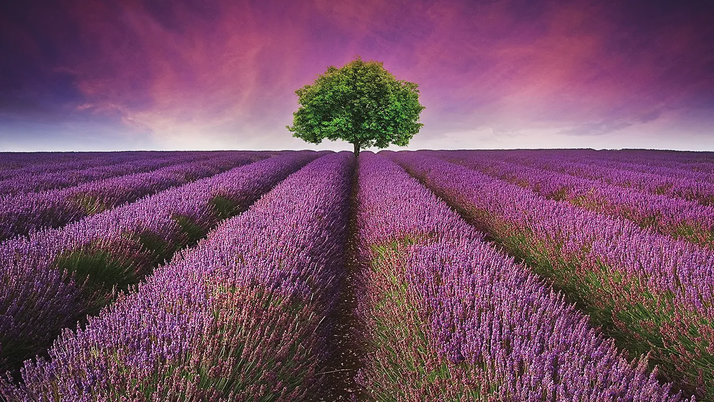 紫色薰衣草背景PPT模板