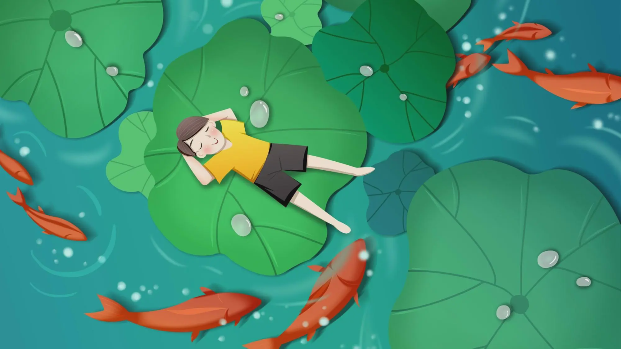 卡通荷葉鯉魚背景大夏節介紹PPT模板
