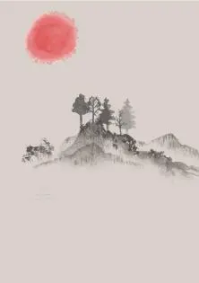 中國古典風格的PPT模板,有山和鶴的背景