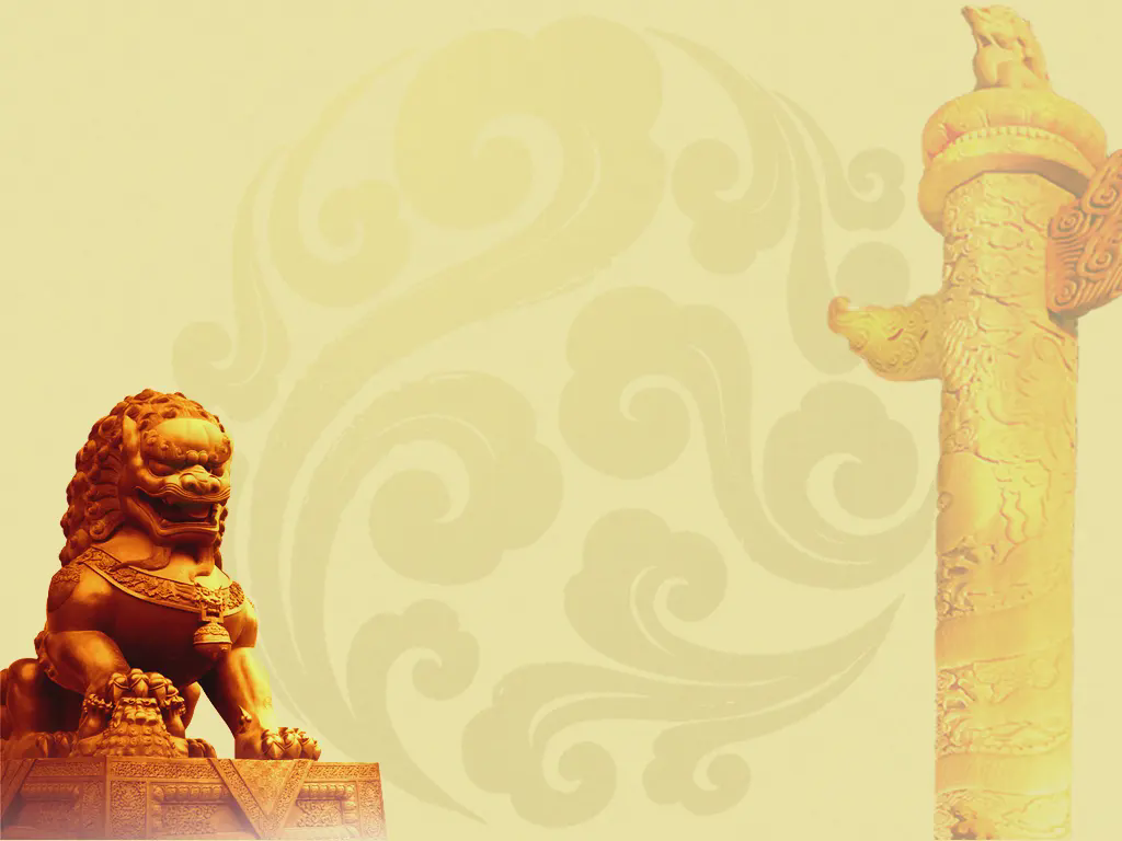 石獅背景中國風PPT模板