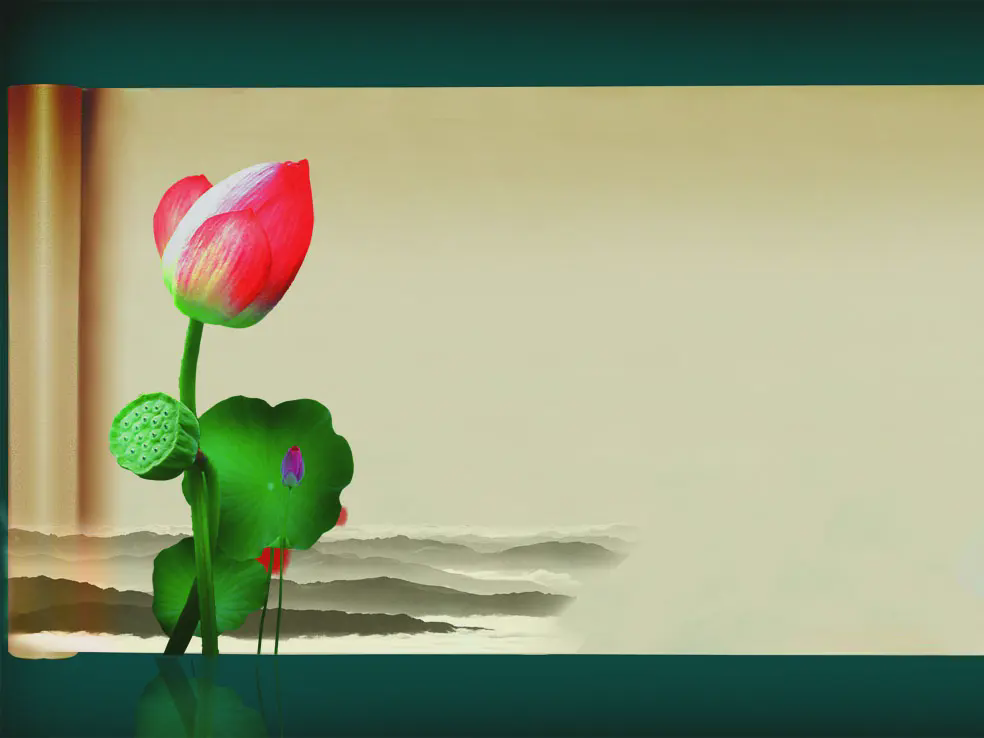中國古典風格荷花捲PPT模板所有素材批量下載