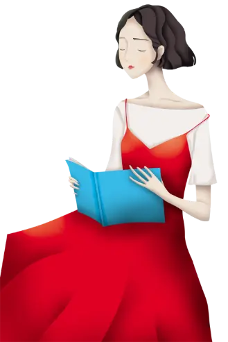 插圖風格的讀書人背景 女王節PPT模板