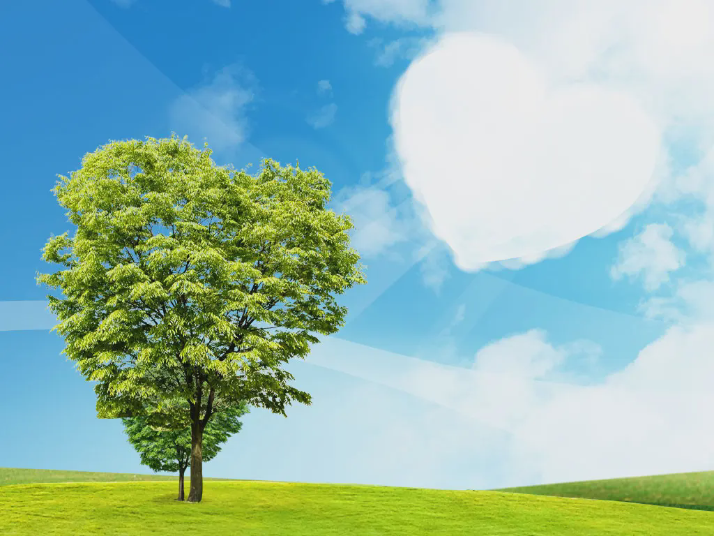 藍天、白雲、綠樹自然風格PPT模板
