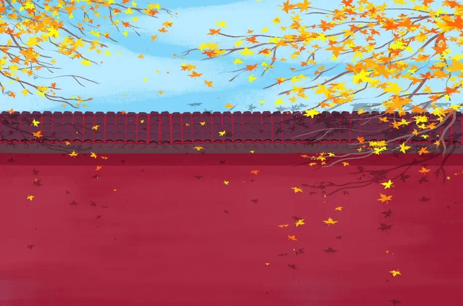 以藍天、白雲、楓葉和古城牆為背景的秋分主題PPT模板