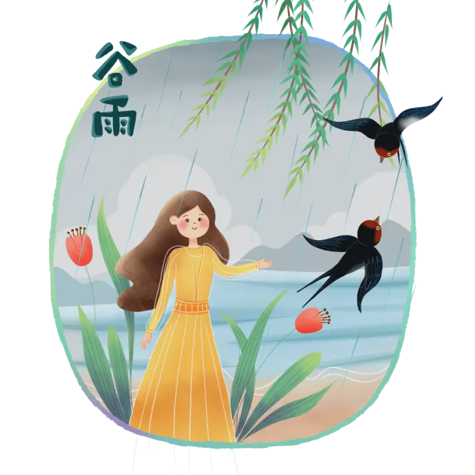 精緻的水墨山水江南建築背景的穀雨節PPT模板