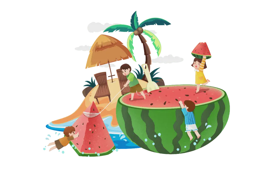 卡通蓮花大西瓜背景的夏日慶典介紹PPT模板