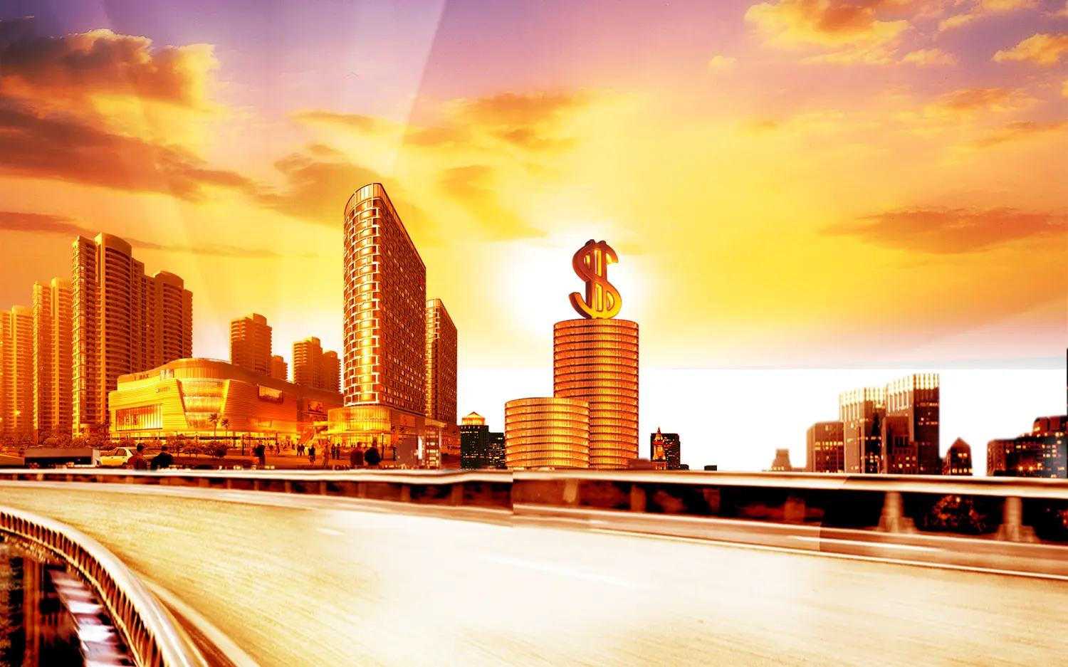 金色建築與貨幣背景的金融理財投資PPT模板