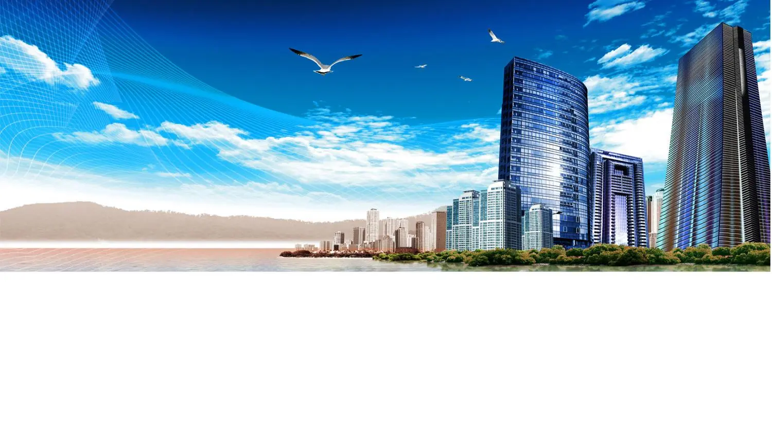 藍天白雲高樓大廈背景的公司簡介PPT模板