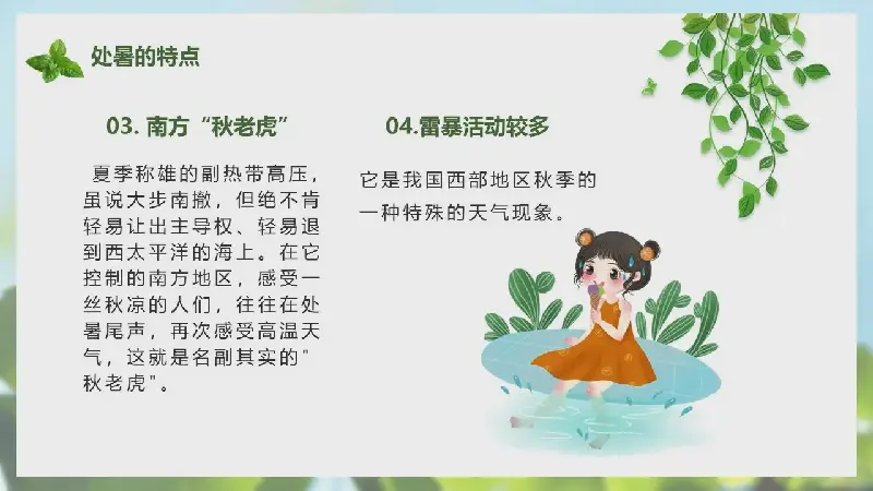 關鍵詞:清新綠葉背景的避暑節PPT模板,避暑節介紹PPT模板免費下載,.PPTX格式;