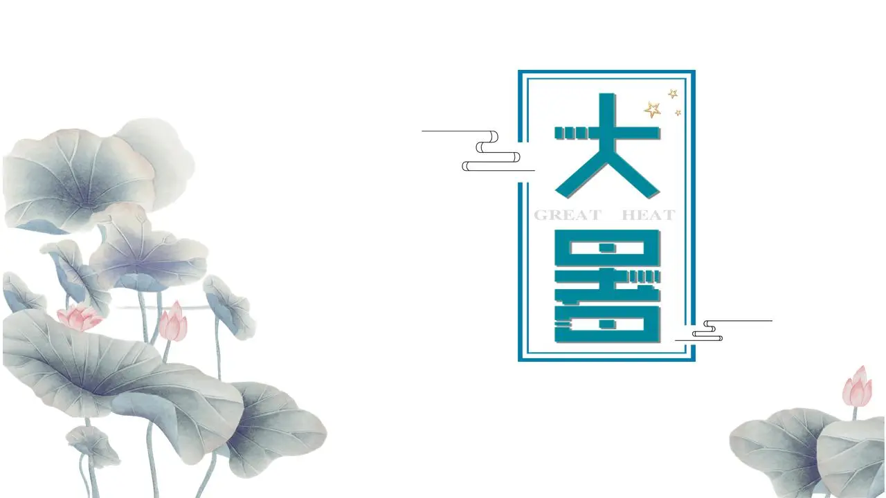 淡雅荷花背景的大暑節氣介紹PPT模板,共20頁;