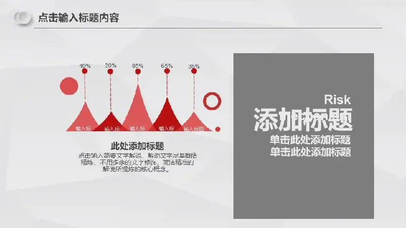 該PPT模板的內容頁由24張紅灰相間的平面幻燈片圖表組成。圖表類型豐富,可以滿足製作PPT使用。另外該PPT模板仍採用商業建築、黑白職場人物圖片進行排版。