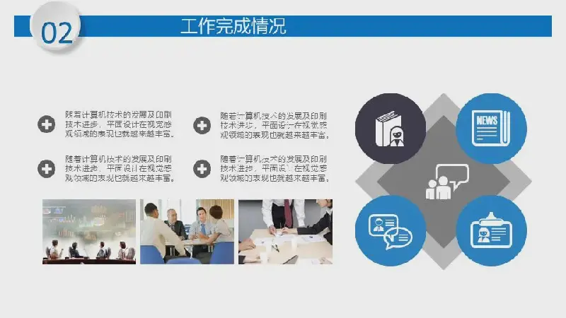 關鍵詞:藍色辦公場景、商務人士、白領幻燈片背景圖片,動態述職報告PPT模板,藍色扁平化幻燈片圖表,年底工作總結幻燈片模板,.PPTX格式;