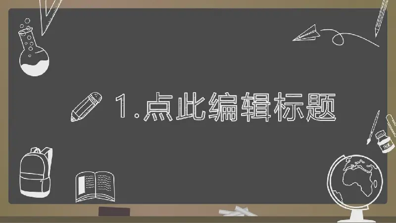 PPT模板採用棕色黑板PPT背景圖片。第一頁放置白色書包、課本、地球儀、鉛筆、教學設備等PPT插圖。中間用白色粉筆手繪字體填充了開學的PPT標題。界面背景與學校開學PPT主題相匹配。