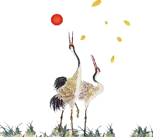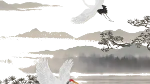 PPT模板的封面是土黃色的背景色,採用水墨畫的山和鶴的背景圖。中間是用毛筆書寫的PPT標題文字。界面風格是古典和莊重的。