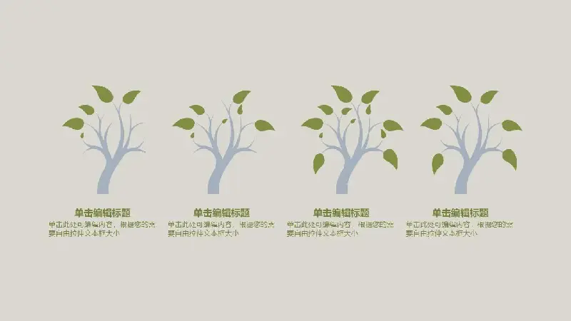 PPT模板的內容頁由25張綠色動態平面幻燈片圖組成。額外的圖案,如植物綠色的幼苗和嫩芽被用於裝飾。