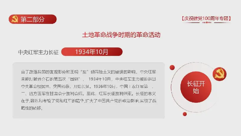 PPT模板的內容頁面由54張紅色動態幻燈片圖表組成,採用主題式黨課文字佈局。此外,還採用了黨徽、金色五角星等黨內政治元素進行裝飾。