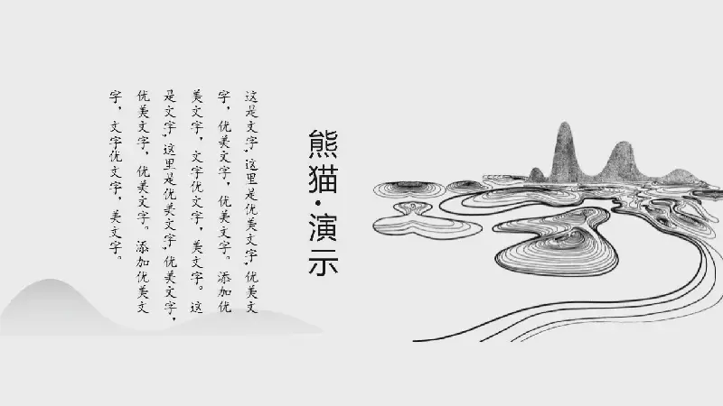 PowerPoint模板內容頁,使用了水墨圖案,古建築插圖、水墨竹子、山水插圖等排版。