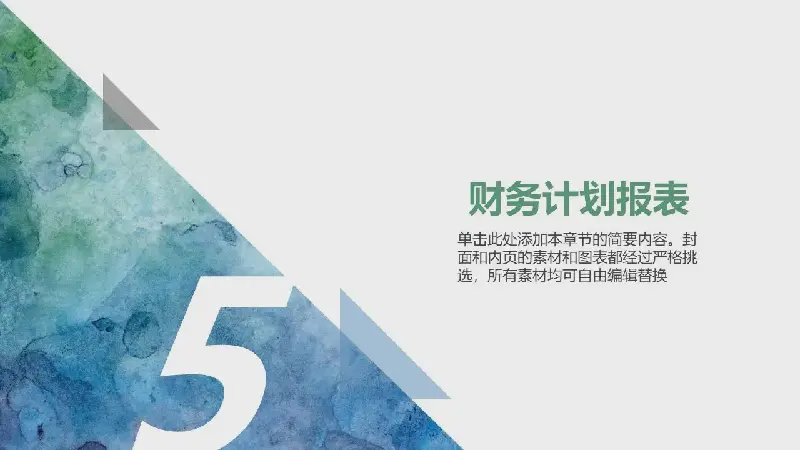 關鍵詞:水彩咻咻PPT背景圖片,藍綠搭配平面幻燈片圖,動態商業融資計劃PPT模板,.PPTX格式;