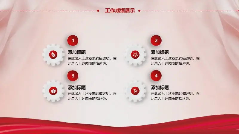 該PPT模板的內容頁由22頁紅色動態PPT圖表組成,採用PPT文案佈局。