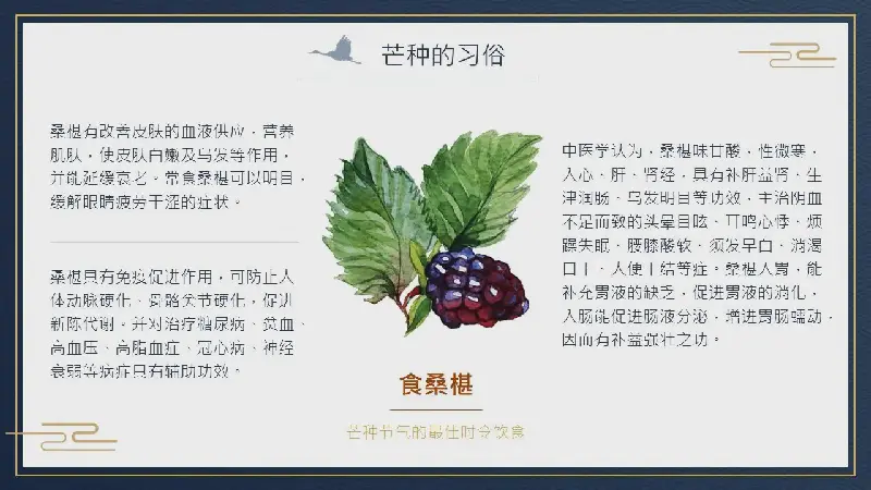 這是一套深藍金線風格的芒種節氣介紹PPT模板,共22頁;
