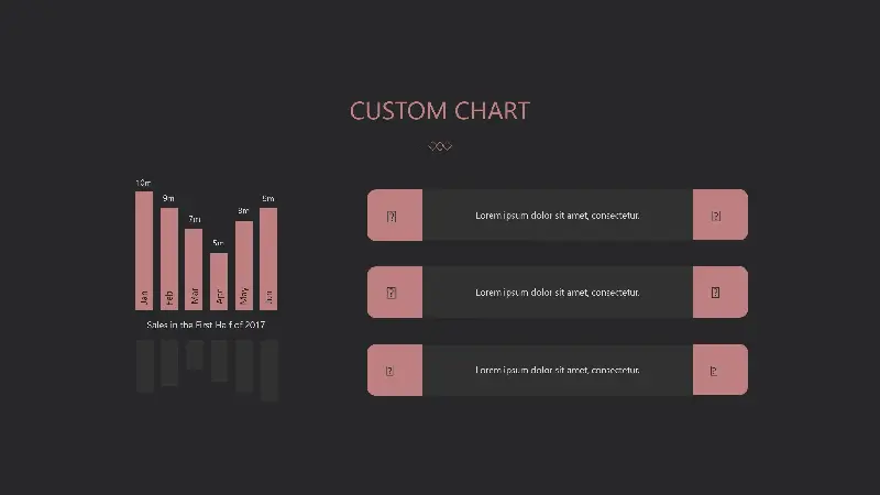 PPT模板的內容頁是由97個粉色細線PPT圖表組成。此外,它還採用了歐美職場人物PPT圖解和自然風光PPT圖解的排版方式。