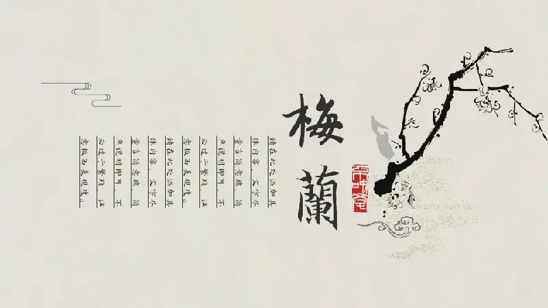 PPT模板封面採用梅竹菊蘭為背景圖片。使用山水中國風界面風格簡潔,富有文化氣息。