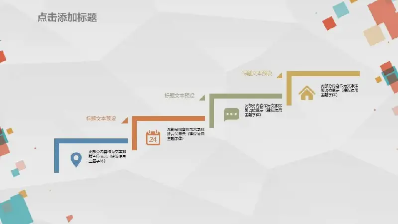 這是一套彩色方框多邊形背景的,通用商務PPT模板,共24張。