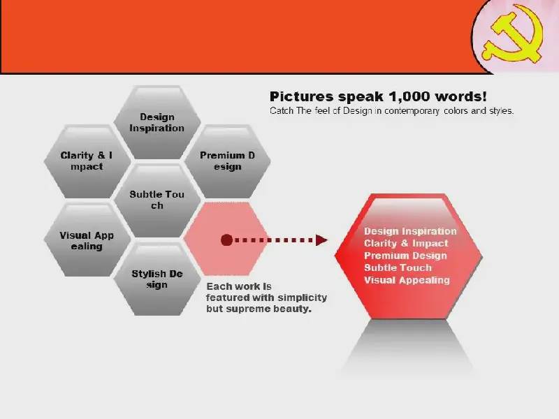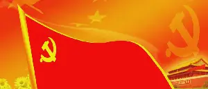 這個黨建日PPT模板,上面是黨徽和黨旗作為PPT背景圖片,下面是黃色作為背景填充。