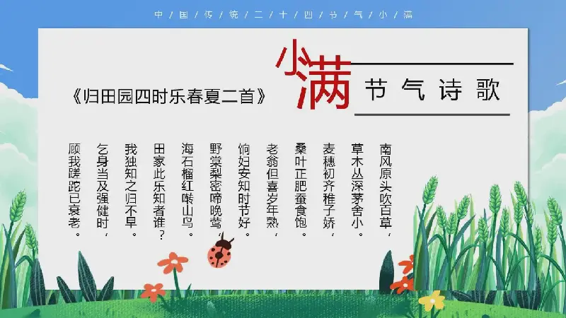 關鍵詞:小滿節氣介紹PPT模板,二十四節氣PPT模板免費下載,.PPTX格式;