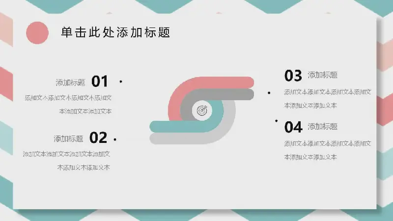 PPT模板封面,採用紅綠相間的波紋PPT背景圖片。中間放置有陰影效果的白色矩形文本框,用於填充PPT標題文字。界面清新、時尚。