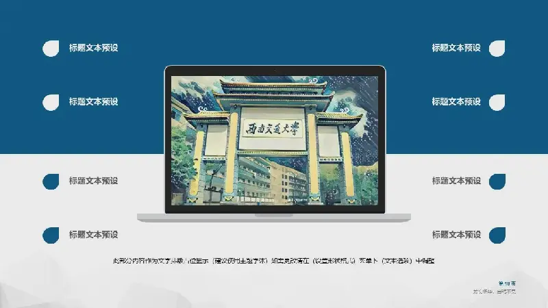 關鍵詞:大學校徽、院校照片PowerPoint背景圖片,藍色扁平化PPT圖表,動態畢業論文答辯PPT模板,.PPTX格式;