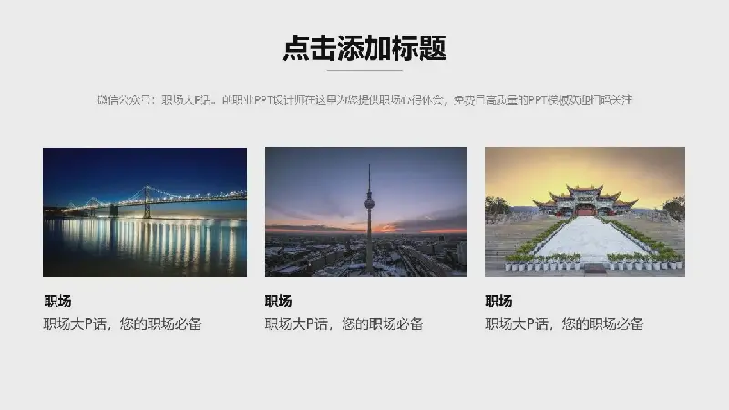 這個模板非常通用和靈活,因為沒有主題約束,所以適合製作與各行業相關的商務演示PPT、工作總結、工作報告PPT等。