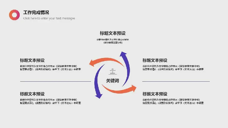 PPT模板的內容頁由22張橙紫色色彩搭配的幻燈片圖表組成,PPT文字佈局。同時還使用了職場人物插圖、辦公場景插圖、握手插圖等裝飾。