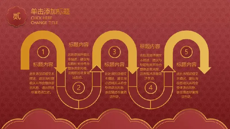 PPT模板的內容頁由23張金色漸變的幻燈片圖表組成,採用PPT文字佈局。此外,還使用了幸運牛圖案作為裝飾。