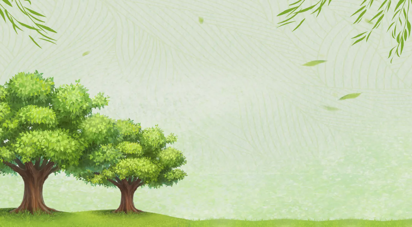 以绿树和柳条为背景的中国植树节PPT模板