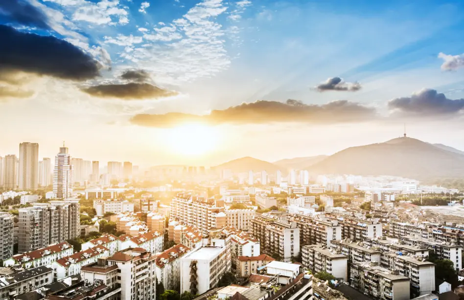 淡雅的城市建筑图片排版风格PPT模板