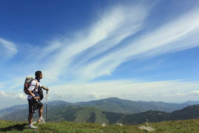 旅游相册PPT模板,背景是一个女孩拿着单反相机在拍照。