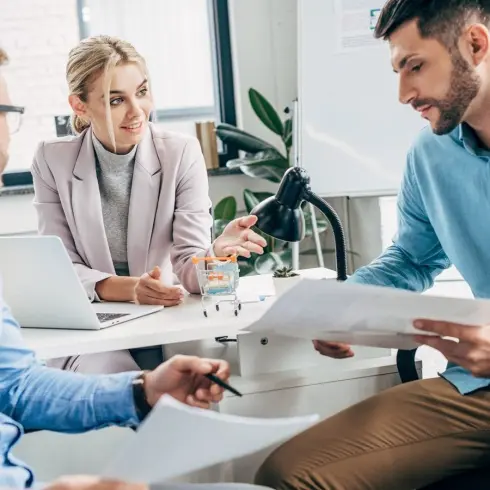 蓝色商务风格个人年终总结PPT模板,有职场人物背景