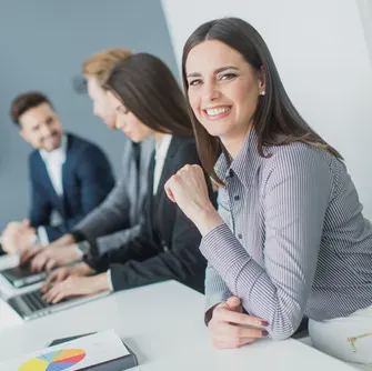 蓝色商务风格个人年终总结PPT模板,有职场人物背景
