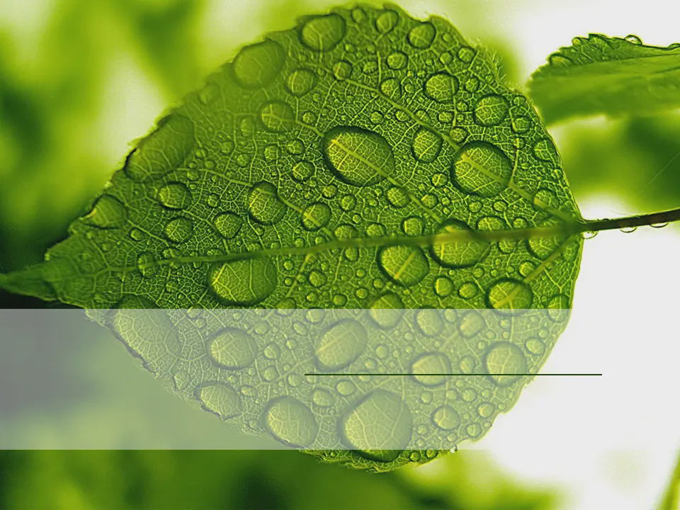 清新绿色叶子水滴背景的植物幻灯片模板